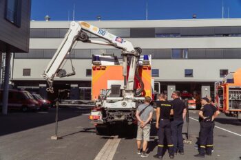 Feuerwehrleute aus Irpin übernehmen Feuerwehrfahrzeuge in Kassel