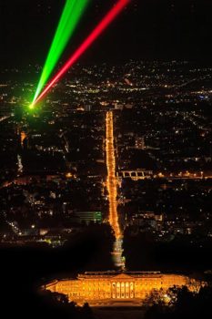 Kassel, 17. Dezember 2020. Ein lang gehegter Wunsch geht in Erfüllung. Ein Wunsch des Lichtkünstlers Horst H. Baumann, der vieler Kasselerinnen und Kasseler und der zahlloser Besucher der Stadt. Der rote Laser des Lichtkunstwerks Laserscape erstrahlt wieder am Kassler Himmel. Und das ab dem 19. Dezember 2020 wieder jeden Samstag.