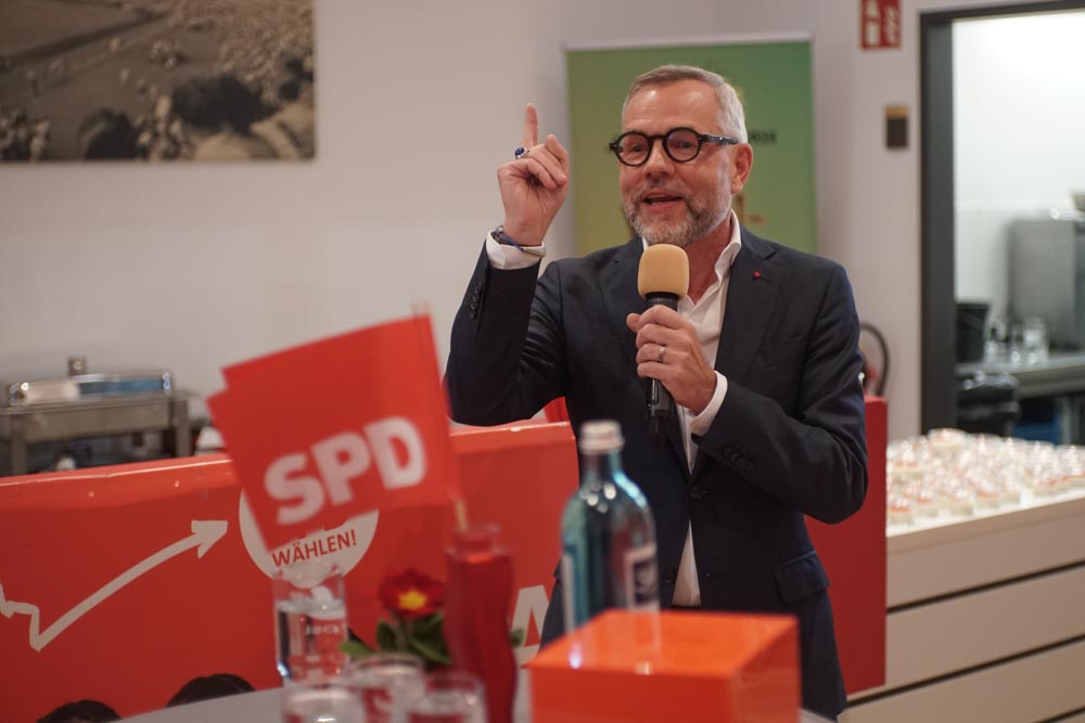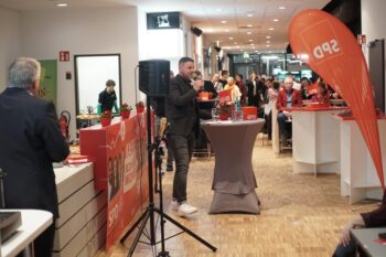 Im Mittelpunkt stand zugleich die kommunalpolitische Mannschaft der SPD. Im Kreis der Spitzenkandidaten suchten Daniel Bettermann und Esther Kalveram den direkten Austausch mit den Gästen. Auch Orry Mittenmayer war präsent und nutzte den Abend für viele Gespräche. Dr. Cornelia Janusch war ebenfalls vor Ort und wurde in zahlreichen Begegnungen als verlässliche Ansprechpartnerin wahrgenommen, die für die lokale Arbeit der SPD steht und die Verbindung zwischen Partei und Stadtgesellschaft sichtbar mitträgt.