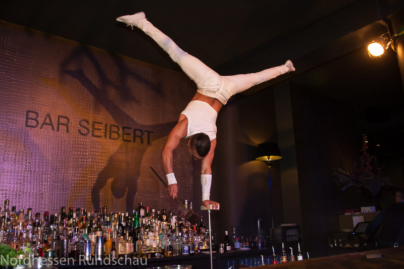 Unter dem Applaus der zahlreichen Zuschauer traten Burlesque-Tänzerin Frau Pepper aus Berlin, Artistin Anna Shalamova aus Moskau, Handstandakrobat Armando Difer aus Cuba, Sängerin Romana Reiff, Malerin Lucy Hobrecht auf. Für die Musik buchte Inhaber Marc Seibert, den Lounge-Music-Star Robert Sell aus Kassel.