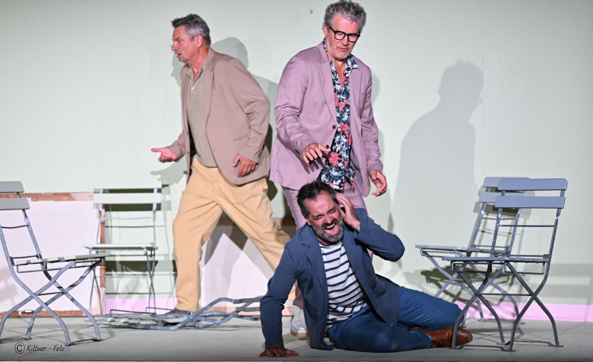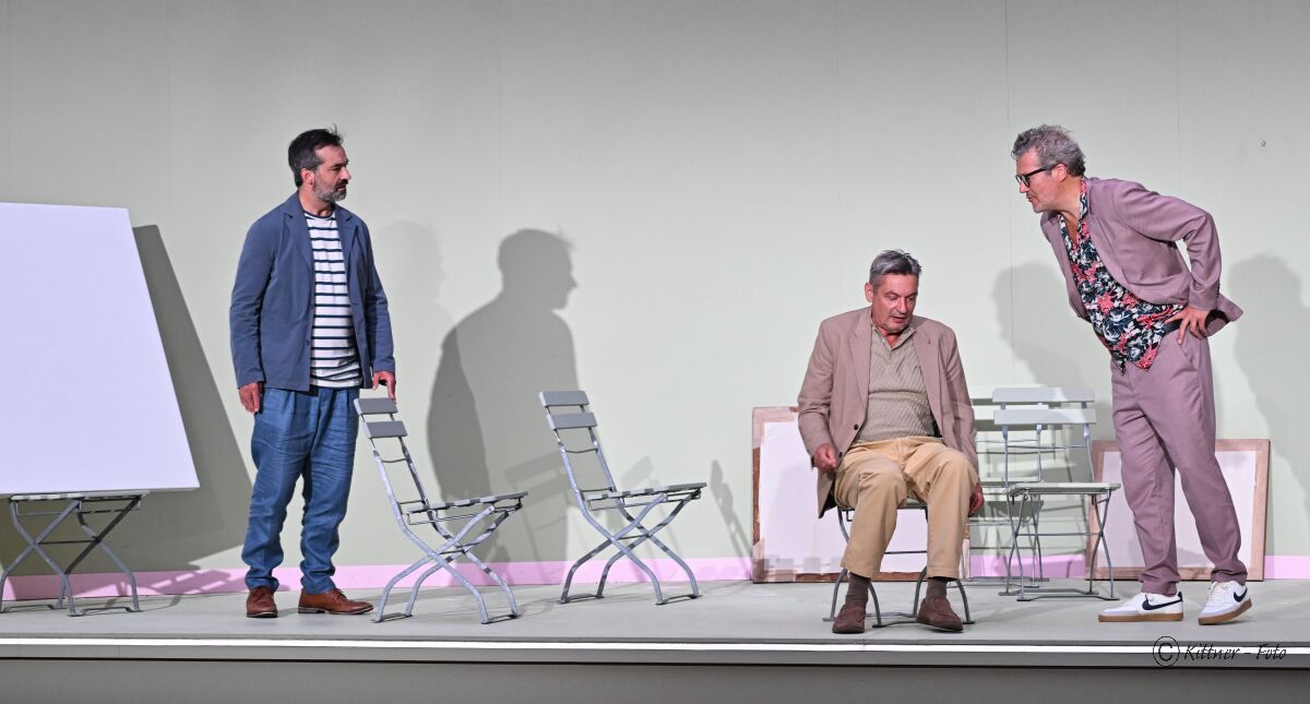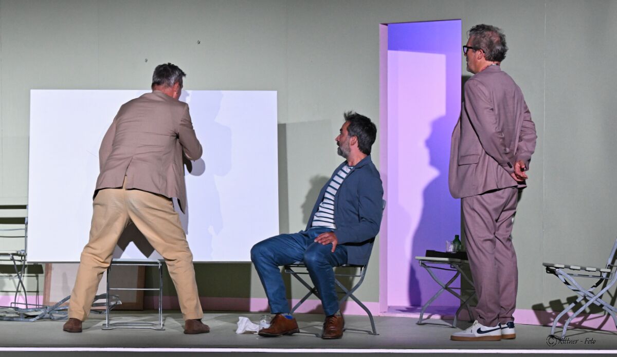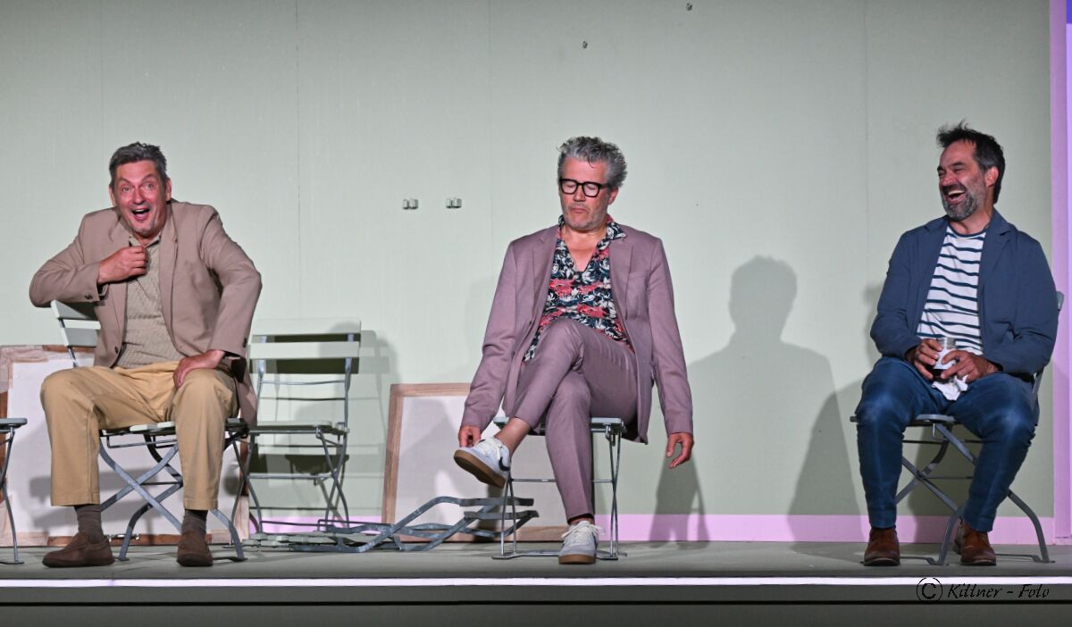 Das zweite Stück der Erfolgsautorin feierte Premiere im Schloss Eichhof am Samstag, dem 19. Juli 2025. Eine Komödie zum Zuhören: ausgefeilte Wortwahl, feine Formulierungen spannende Dialoge! Die konzentriere Leistung der drei Schauspieler begeisterte. Verdienter langanhaltender Applaus der Zuschauer im ausverkauften Schloss Eichhof. In Bad Hersfeld spielen Christian Nickel, Götz Schulte und Bijan Zamani die drei heftig diskutierenden Herren.