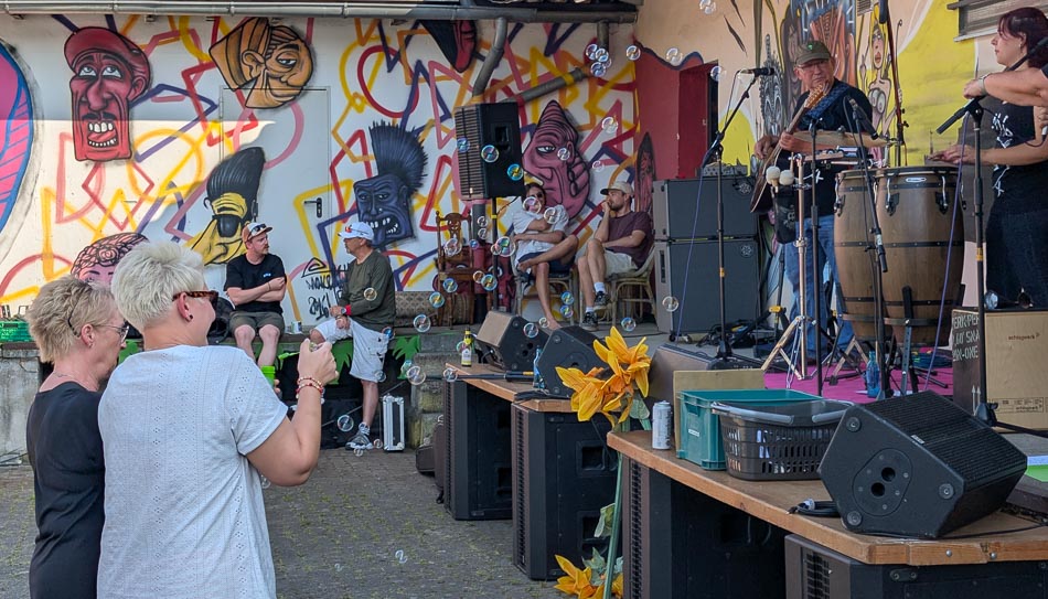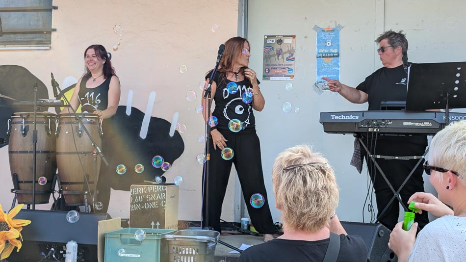 Doch nicht nur die Musik machte den Tag besonders: Eine Tombola ohne Nieten lockte mit zahlreichen Gewinnen. Für das leibliche Wohl sorgte ein Grill zum Selbstgrillen. Bei hochsommerlichen Temperaturen und einem kühlen Getränk herrschte eine super Stimmung auf der Fläche. Die Gäste genossen das Wetter, kamen ins Gespräch, lauschten der Musik – und feierten den Verein mit sichtlicher Begeisterung.
