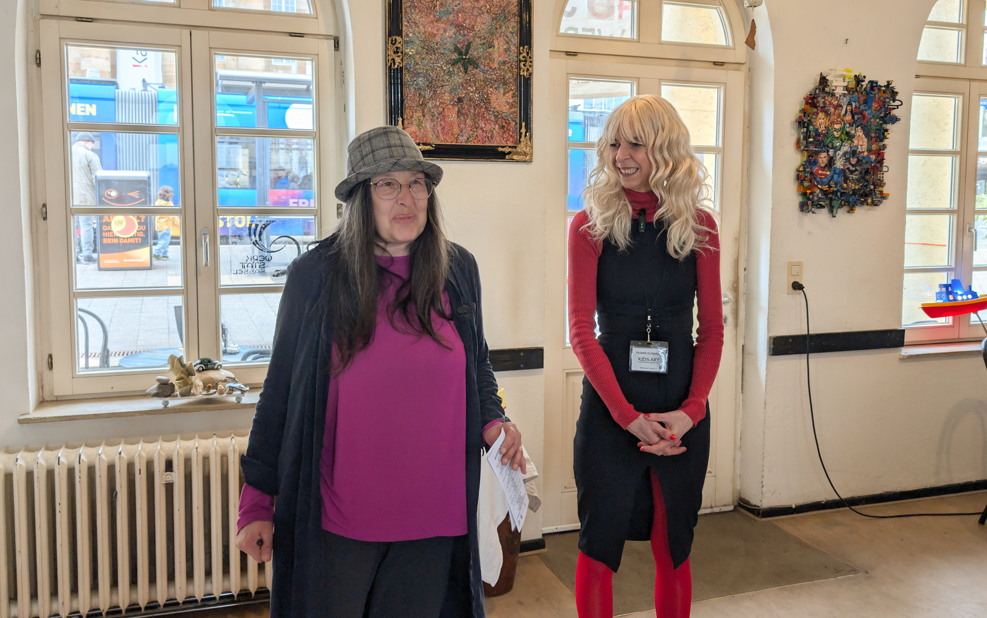 Geprägt wird die besondere Atmosphäre der Werkstatt Kassel e. V. auch durch die Menschen, die sie mit Leben füllen. Carmen Weidemann, eine der prägenden Persönlichkeiten des Hauses, gilt für viele als verlässliche Konstante und als Herzstück der Einrichtung. Mit großem Engagement und spürbarer Leidenschaft trägt sie dazu bei, dass die Werkstatt seit Jahrzehnten ein Ort der Begegnung und Kreativität ist. Unterstützt wird sie von Jana Ißleib, die mit ihrer offenen und herzlichen Art die Pressearbeit verantwortet und tief in der Kasseler Kulturszene vernetzt ist. Mit ihrem umfassenden Überblick über die vielfältigen kulturellen Veranstaltungen der Region ist sie eine wichtige Ansprechpartnerin für Kunst und Öffentlichkeit.