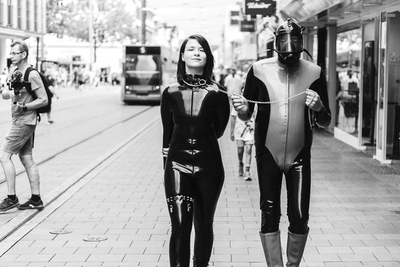 Ungewöhnliche Kunst-Performance in Kassel: Latex-Models ziehen die Blicke auf sich