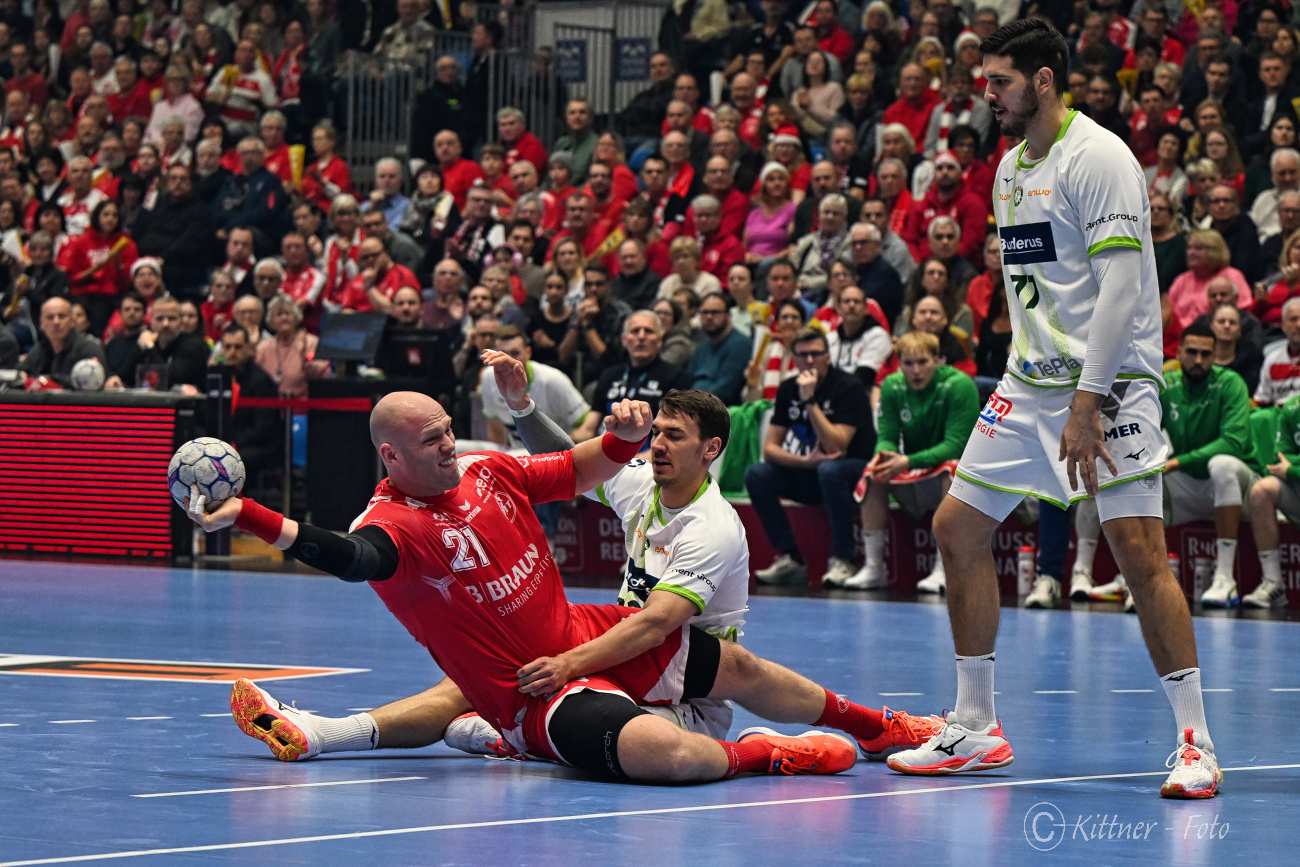 In der Deckung brachte die Hereinnahme von David Mandic etwas Stabilität, vorn gingen wieder weniger Bälle verloren. Was sich sofort im Ergebnis niederschlug. Das Spiel selbst blieb sehr schnell, schon drei Minuten vor der Halbzeit machte Timo Kastening per Tempogegenstoß die 20 voll und einen neuerlichen Vier-Tore-Vorsprung perfekt. Beide Trainer hatten mittlerweile ihre Keeper gewechselt. Vlad Kuleshs 22:18 schloss die torreiche erste Hälfte ab und konservierte gleichzeitig den Vorsprung für Rot-Weiß.