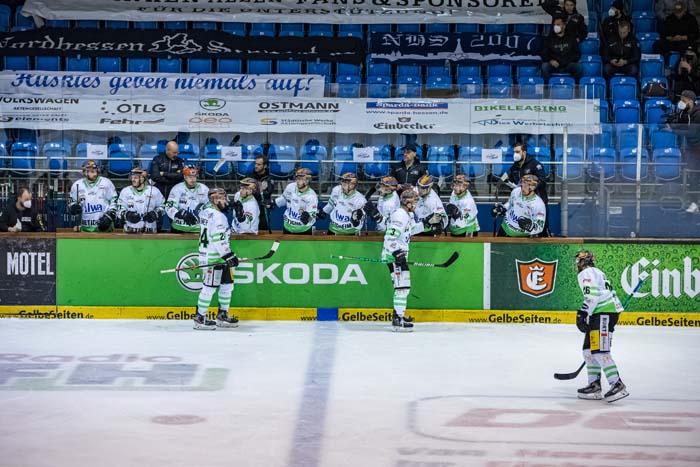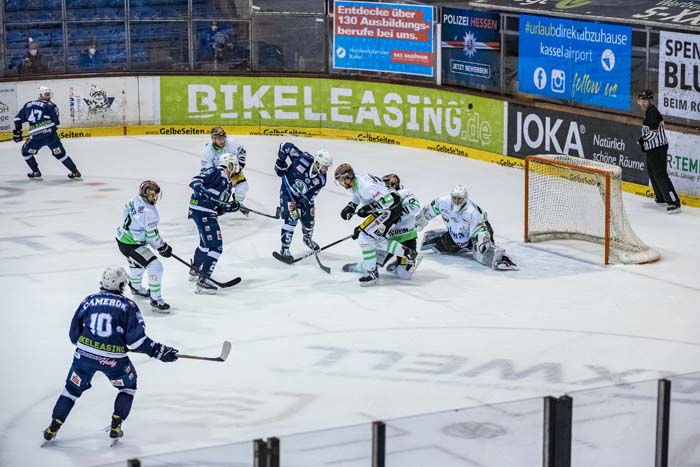 wie leider in jedem Saisonheimspiel leere Kasseler Eissporthalle. Philippe Cornet verwertete ein Zuspiel von Ryon Moser zur Kasseler Führung. Diese sollte aber nur fünf