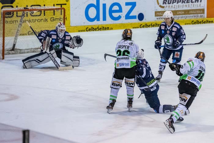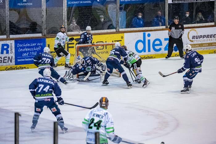 So ging es mit dem Zwischenstand von 2:1 aus Huskies-Sicht in den Schlussabschnitt. Dort gaben zunächst die Hausherren den Ton an. Der Mannschaft von Tim Kehler war anzumerken, dass sie mit einem schnellen Tor die Entscheidung wollten. Doch sowohl Lois Spitzner, der die Scheibe am langen Pfosten vorbeilegte, als auch Clarke Breitkreuz, der nur die Latte traf, schafften dies nicht. So hatten die Gäste in der 49. Minute die große Chance zum Ausgleich. Kneisler stochert im Torraum, brachte die Scheibe aber nicht über die Linie. Jerry Kuhn machte exzellent den unteren Bereich seines Tores zu.