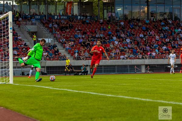Tatsächlich bekamen die Kickers mit einem Mann weniger die Partie besser in den Griff. Nach der Pause kam Moody Chana für die Offensivkraft Serkan Firat, gegen den Ball bildete der OFC nun eine Fünferabwehrkette, die den Löwen nur wenig Platz ließ. Offenbach zog sich zurück, lauerte auf Konter. Einen davon musste KSV-Torwart Nicolas Gröteke gegen den aufgerückten Innenverteidiger Sebastian Zieleniecki klären (61.). Eine letzte Gelegenheit hatte in der Nachspielzeit Ingmar Merle, der den Ball aus 25 Metern aber über das Tor schoss.