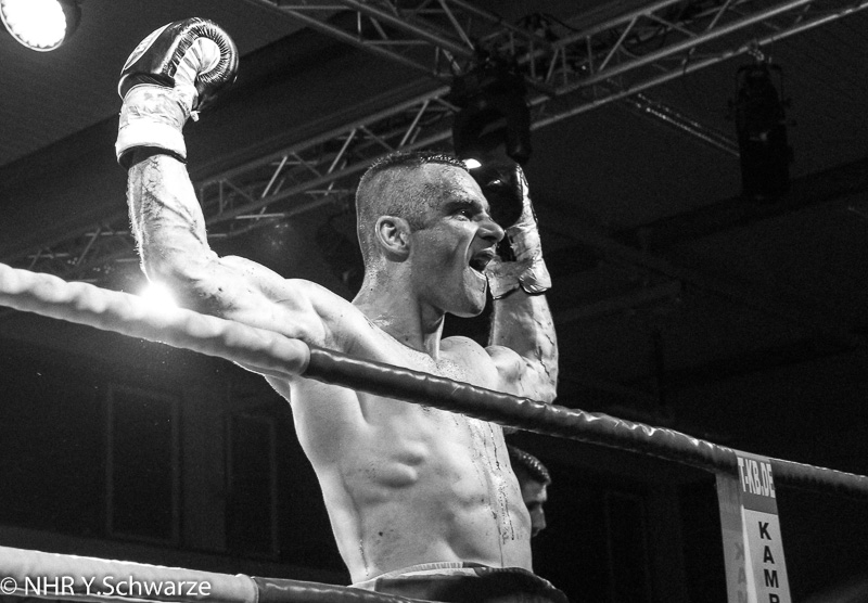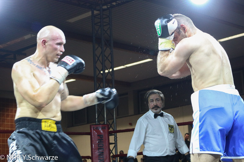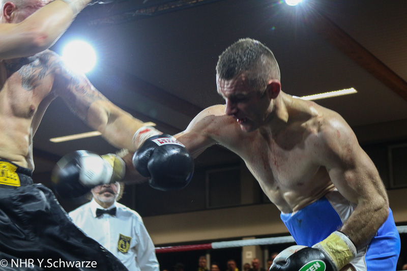 Spannend wurde es auch bei dem 8. Kampf, als Waldemar Schönbeck gegen Amir Solak aus Bosnien Herzegowina in den Ring stieg.