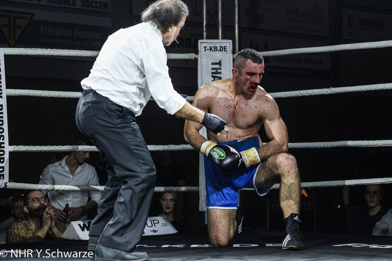 Ebenfalls viele Fans brachte der Bielefelder Emin Atra mit, der seinen Gegner Giorgi Aduashvili in Runde 3 durch KO bezwang.