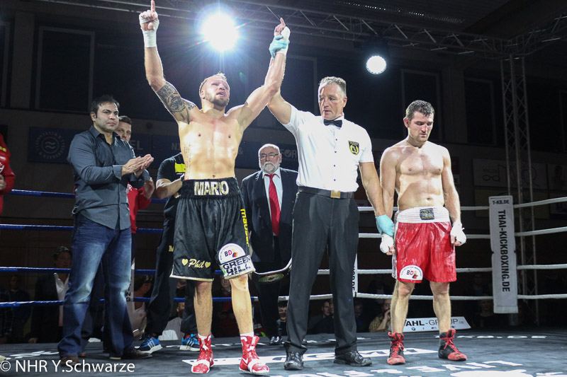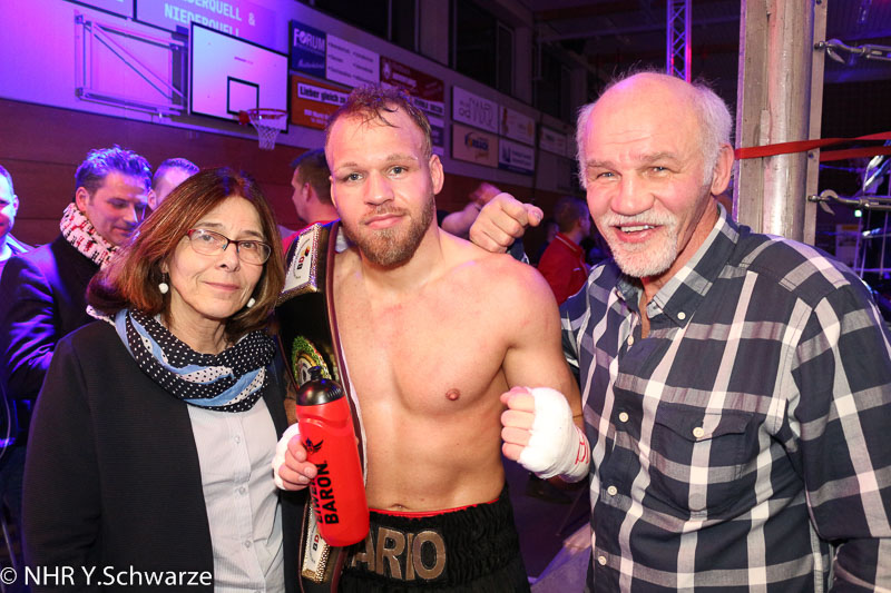 den Tiel zu kämpfen. Es war schon lange ein Traum von Mario Jassmann, in seiner Heimatstadt um einen Profititel zu boxen. Nach seinem Sieg wurde er von seiner Familie und seinen Fans euphorisch gefeiert.