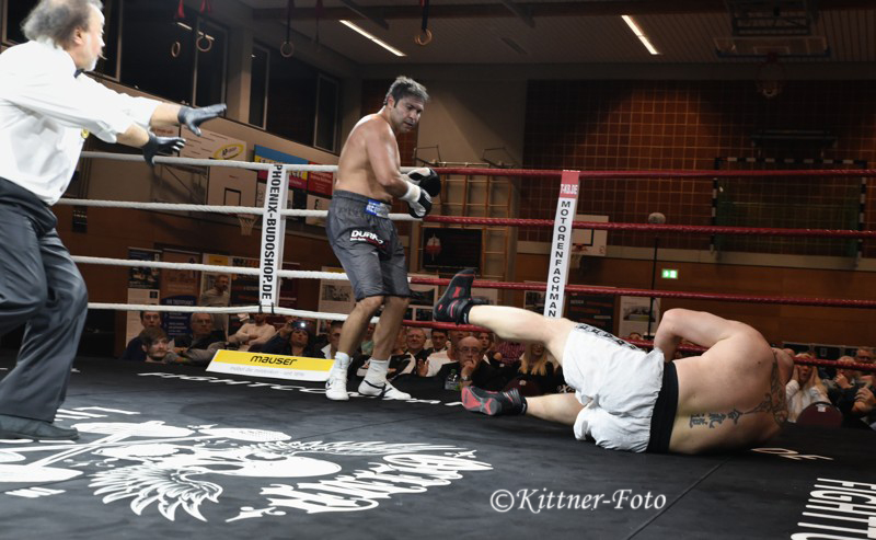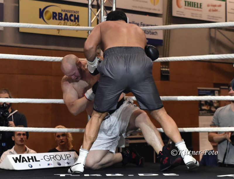 Ebenfalls viele Fans brachte der Bielefelder Emin Atra mit, der seinen Gegner Giorgi Aduashvili in Runde 3 durch KO bezwang.