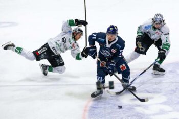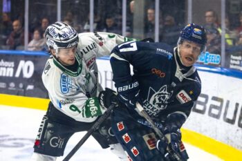 Doch die Antwort der Gäste folgte postwendend: Kemp versuchte es mit einem Bauerntrick, traf – etwas glücklich – den Schläger von Bode Wilde, und von dort trudelte die Scheibe zum 3:3 (50.) über die Linie.