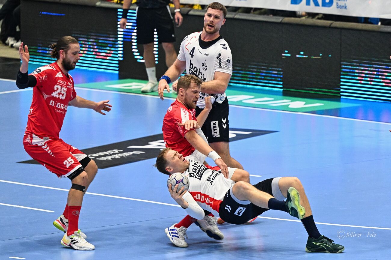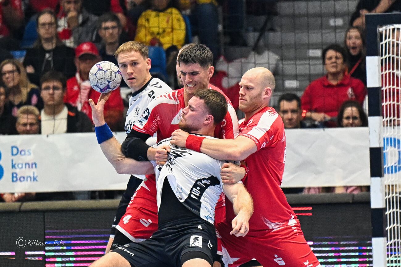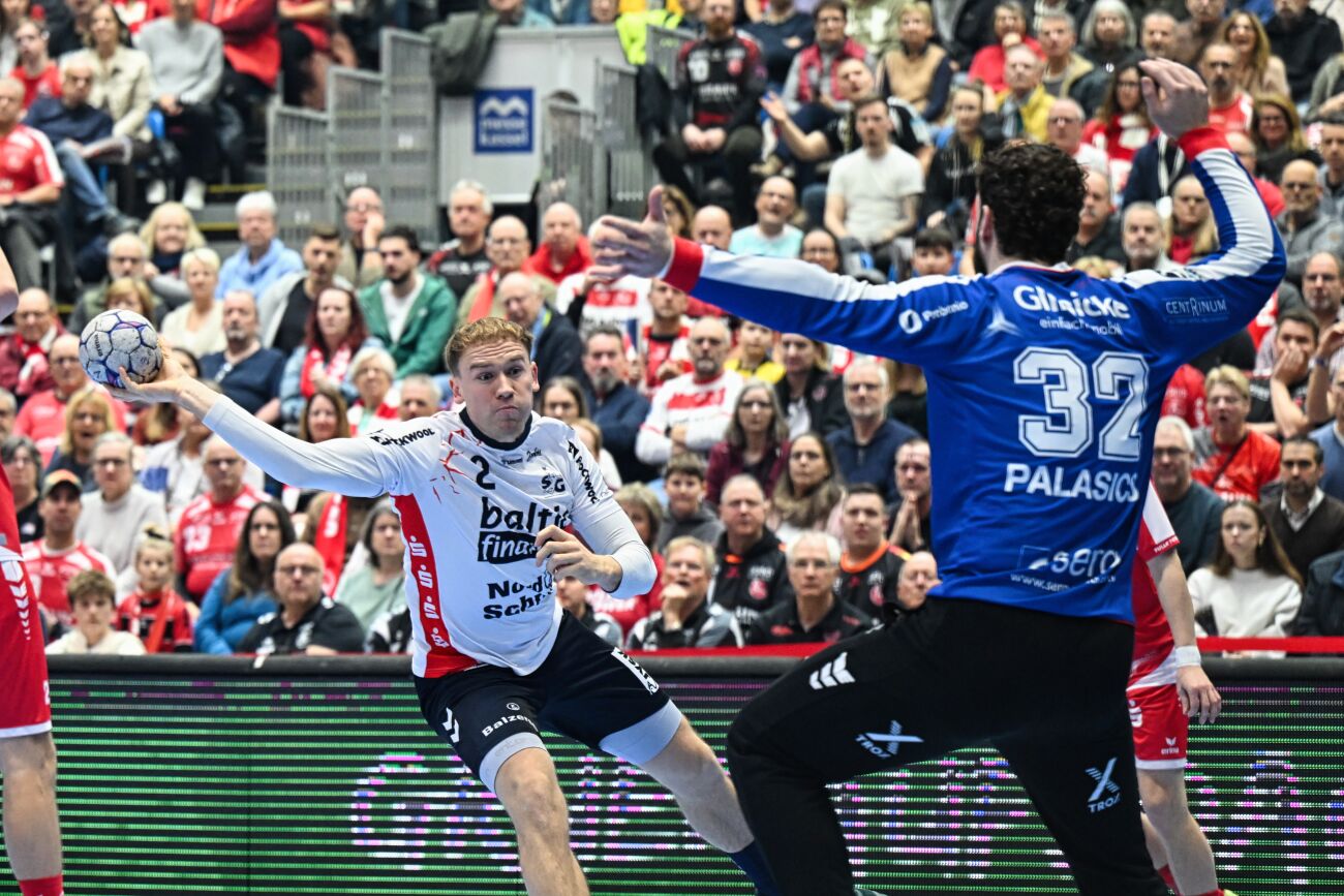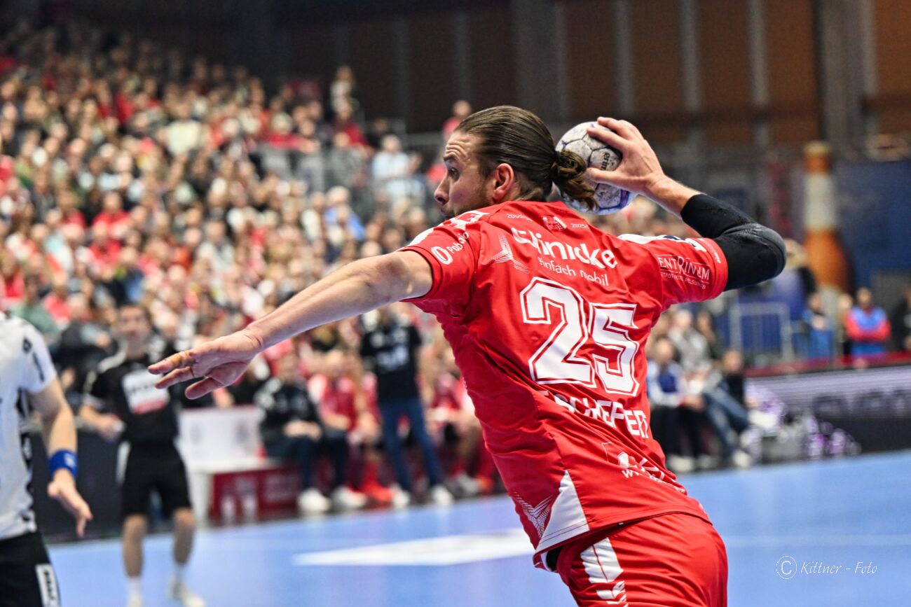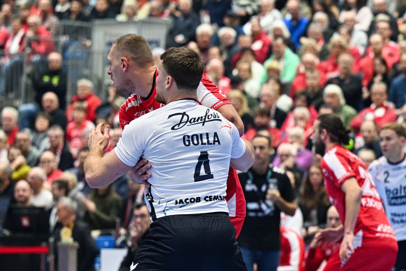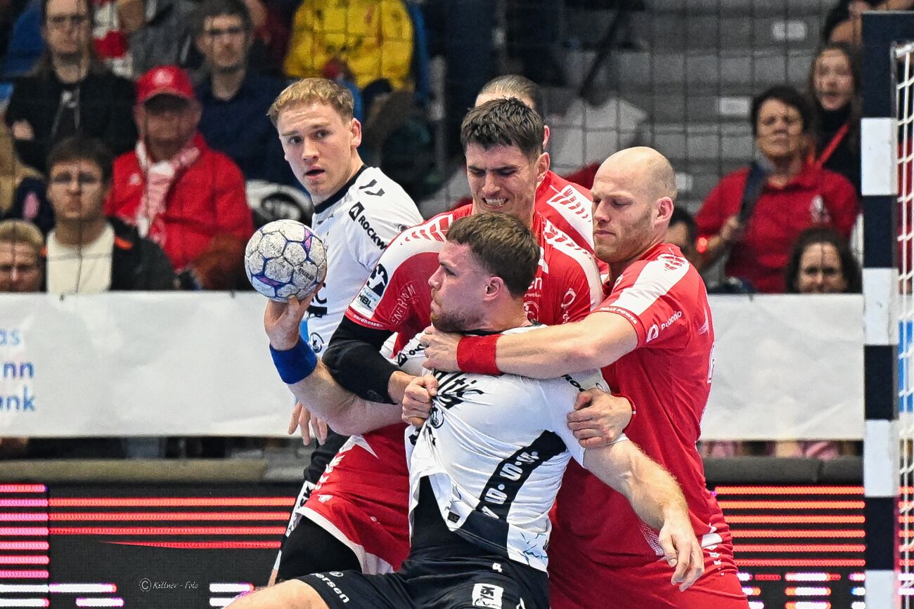 Glück für die Gäste dann, dass Daniel Grgic trotz Fußabwehr eines Darmoul-Passes ohne Strafe davonkam und Kristopans‘ Wurf von der Unterkante der Latte ins Feld zurücksprang. Auch Arnar Freyr Arnarssons Wurf, von Buric noch berührt, tropfte vom Querbalken zurück. Die Hausherren bekamen stehende Ovationen für wirklich starke Spielzüge, Flensburg nutzte derweil jede sich bietende eigene Chance. Dass der Wurf von Grgic ebenfalls am Innenpfosten landete, von dort aber über die Linie sprang, passte ins Bild – 21:25 (44.).