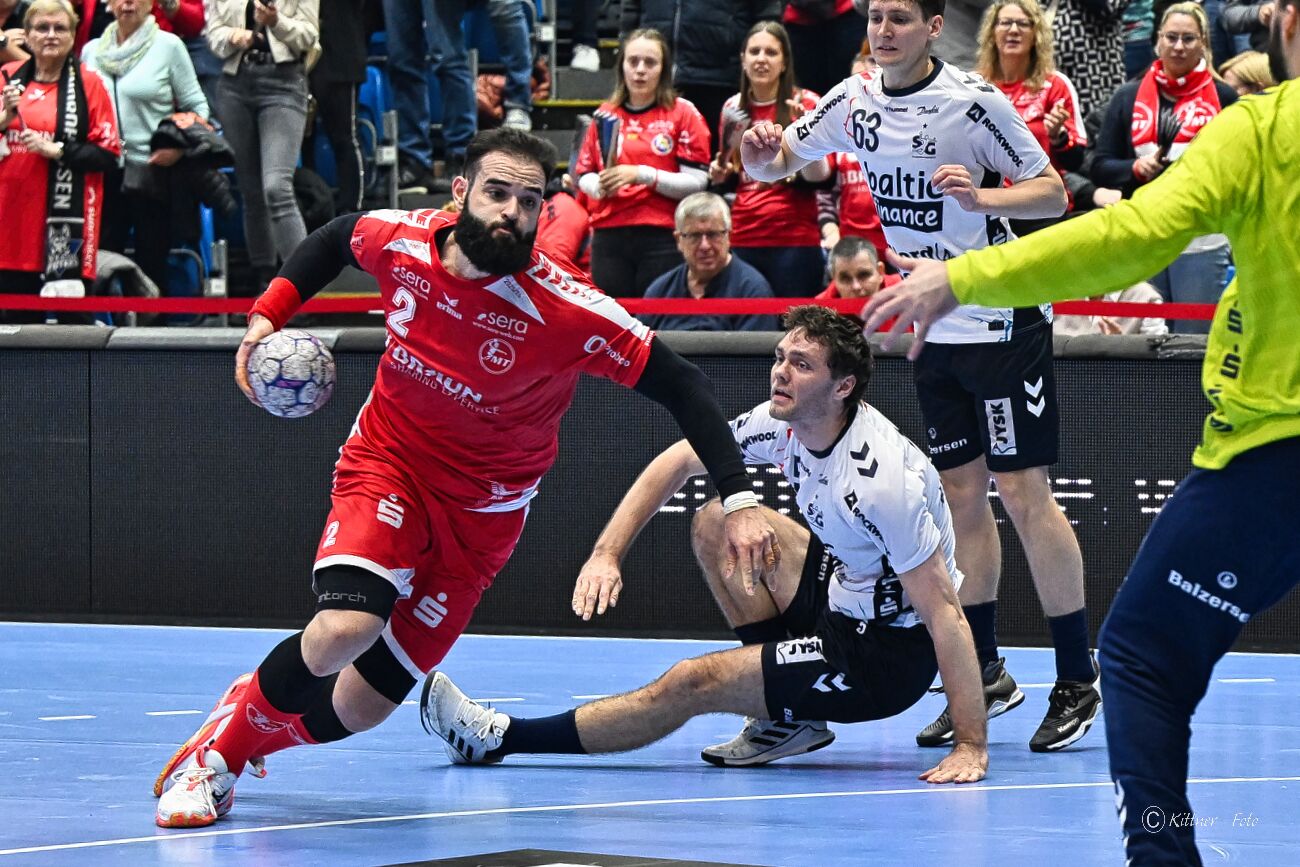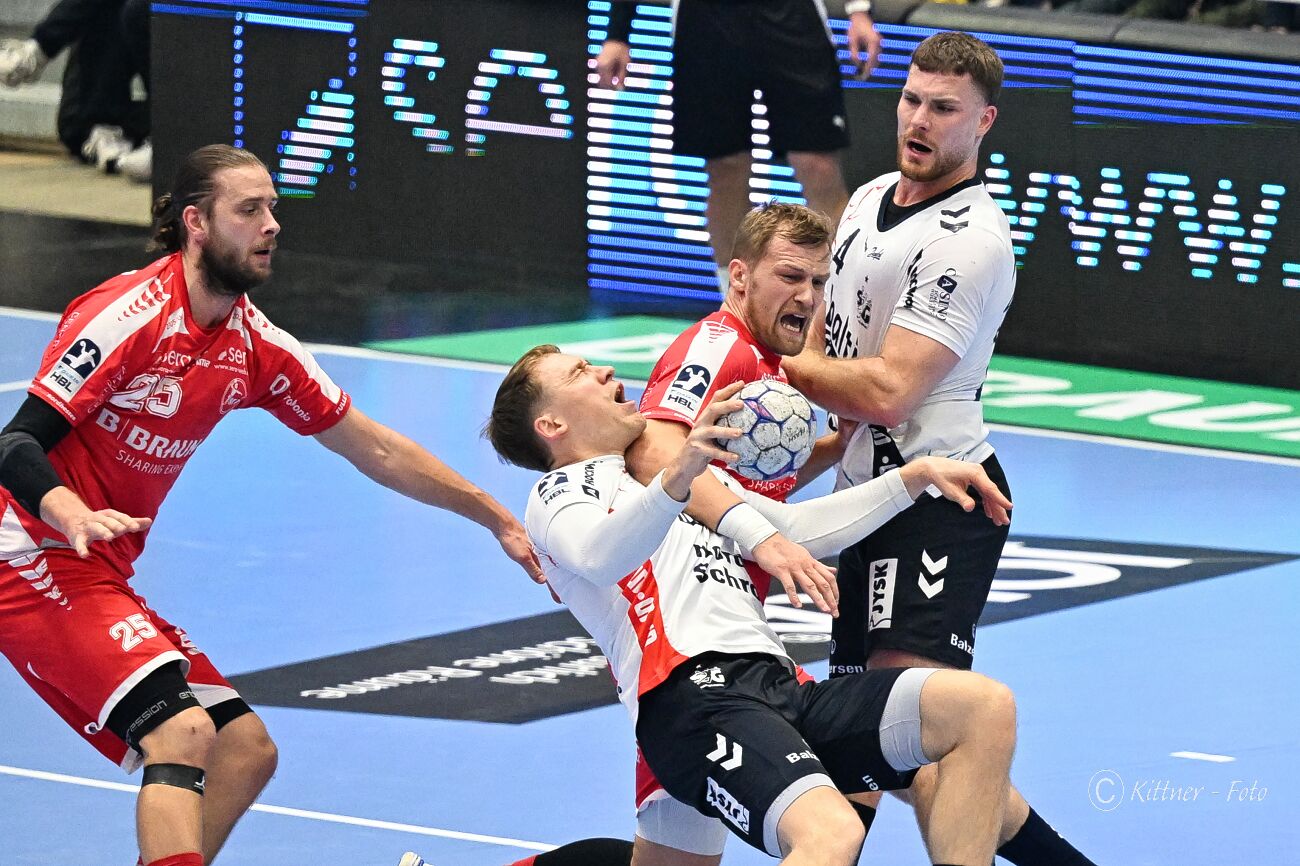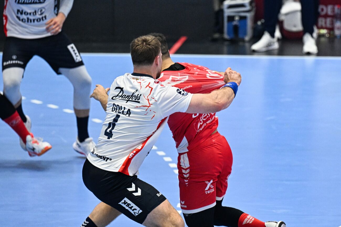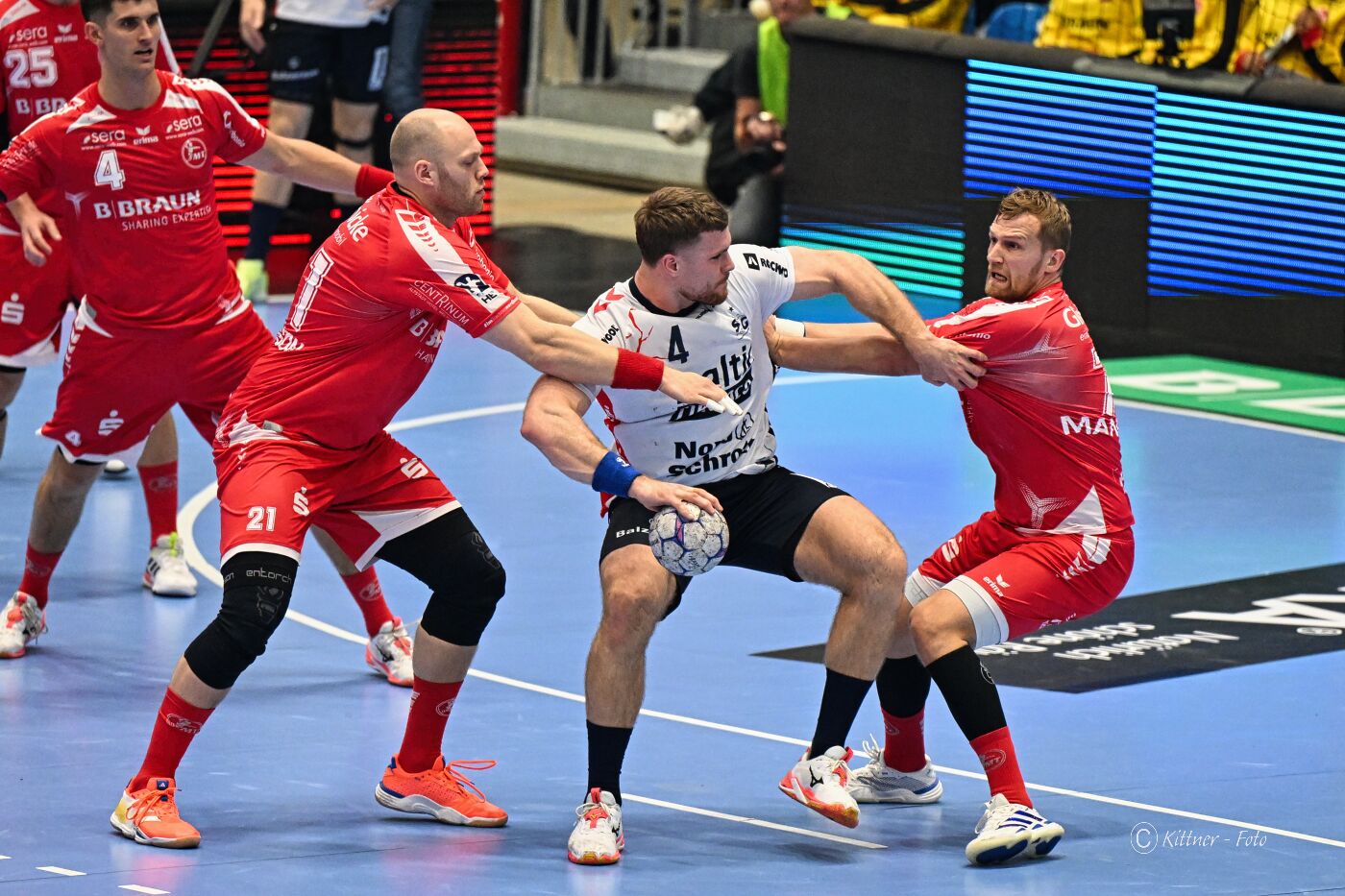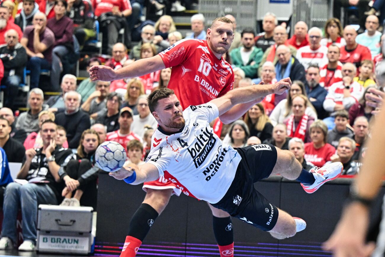 Glück für die Gäste dann, dass Daniel Grgic trotz Fußabwehr eines Darmoul-Passes ohne Strafe davonkam und Kristopans‘ Wurf von der Unterkante der Latte ins Feld zurücksprang. Auch Arnar Freyr Arnarssons Wurf, von Buric noch berührt, tropfte vom Querbalken zurück. Die Hausherren bekamen stehende Ovationen für wirklich starke Spielzüge, Flensburg nutzte derweil jede sich bietende eigene Chance. Dass der Wurf von Grgic ebenfalls am Innenpfosten landete, von dort aber über die Linie sprang, passte ins Bild – 21:25 (44.).