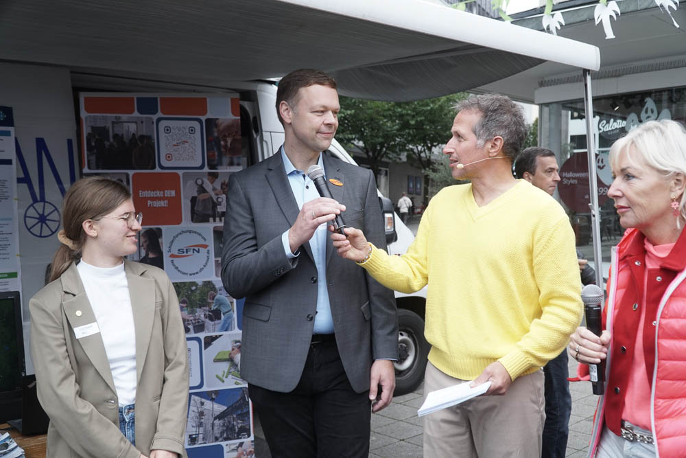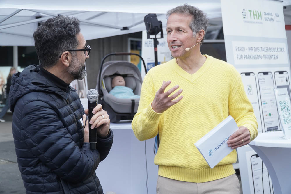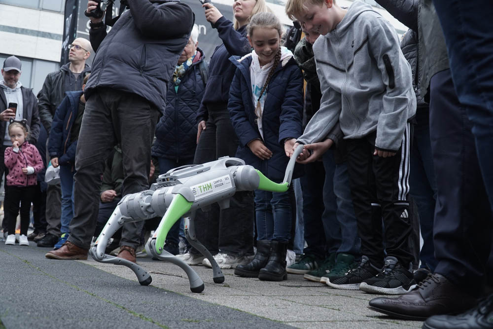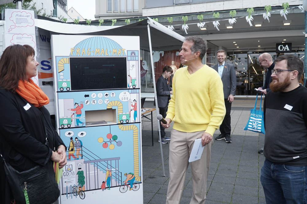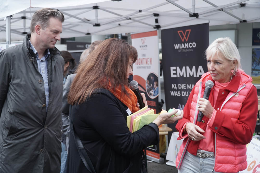 Nach einleitenden Worten von Oberbürgermeister Dr. Sven Schoeller, Digitalministerin Prof. Dr. Kristina Sinemus und Willi Weitzel, bekannt aus der Sendung „Willi wills wissen“, wurde das Programm eröffnet. Der Opernplatz in Kassel war Schauplatz eines abwechslungsreichen Programms. Dort konnten die Besucherinnen und Besucher erleben, wie vielfältig KI bereits in den Alltag integriert ist: Ein Roboterkopf, der in 40 Sprachen kommunizieren konnte, ein Assistenz-Roboter, der durch Bewegungen gesteuert wurde, bot spannende Einblicke in die Technik von morgen. Auch ein virtueller Blick auf den Arbeitsplatz der Zukunft und ein interaktives Quiz, das spielerisch Wissen vermittelte, gehörten dazu.
