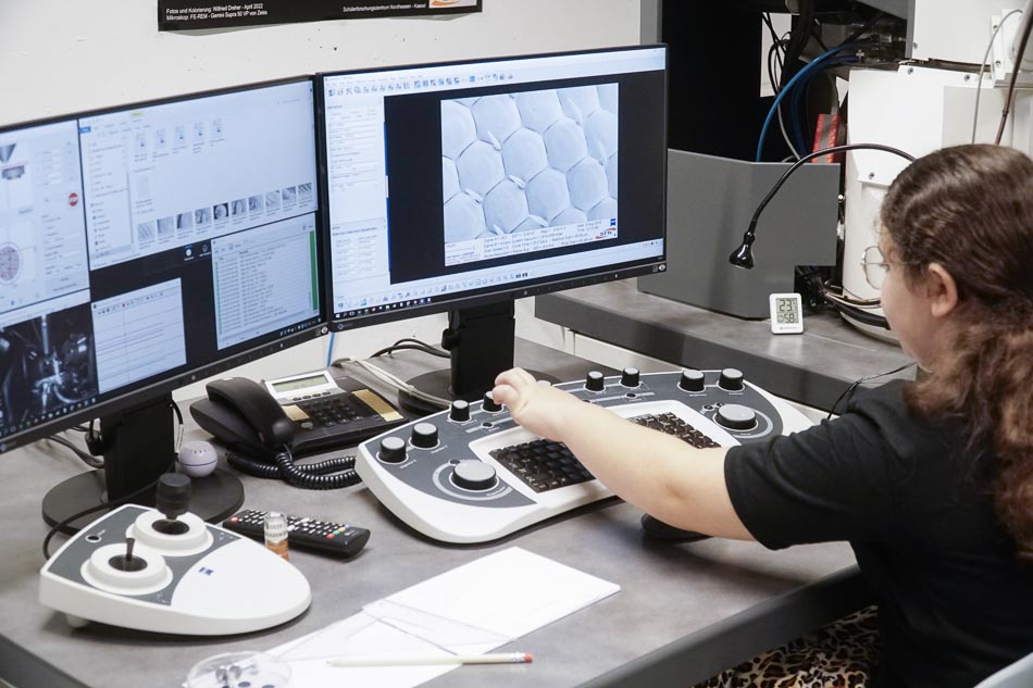 Die Technologie des Rasterelektronenmikroskops hat Wissenschaft und Industrie revolutioniert, indem sie faszinierende Einblicke in die Welt der kleinsten Strukturen – etwa Zellen, Materialien oder Nanopartikel – eröffnet. Besonders spannend wurde es, als die Teilnehmerinnen eigene Proben mitbrachten, darunter einen abgebrochenen Zahn.
