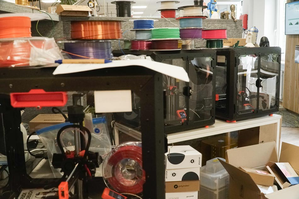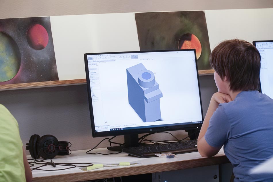 Im Workshop mit Philipp Jäger lernten die Teilnehmer*innen, wie man eine sogenannte Useless Box konstruiert. Dabei wurden die einzelnen Bauteile in SolidWorks entworfen, die elektrischen Komponenten verlötet und der Controller programmiert. Sobald man die Box einschaltete, fuhr sofort ein kleiner Mechanismus heraus, der die Box wieder ausschaltete – eine scheinbar sinnlose, aber faszinierende Maschine.
