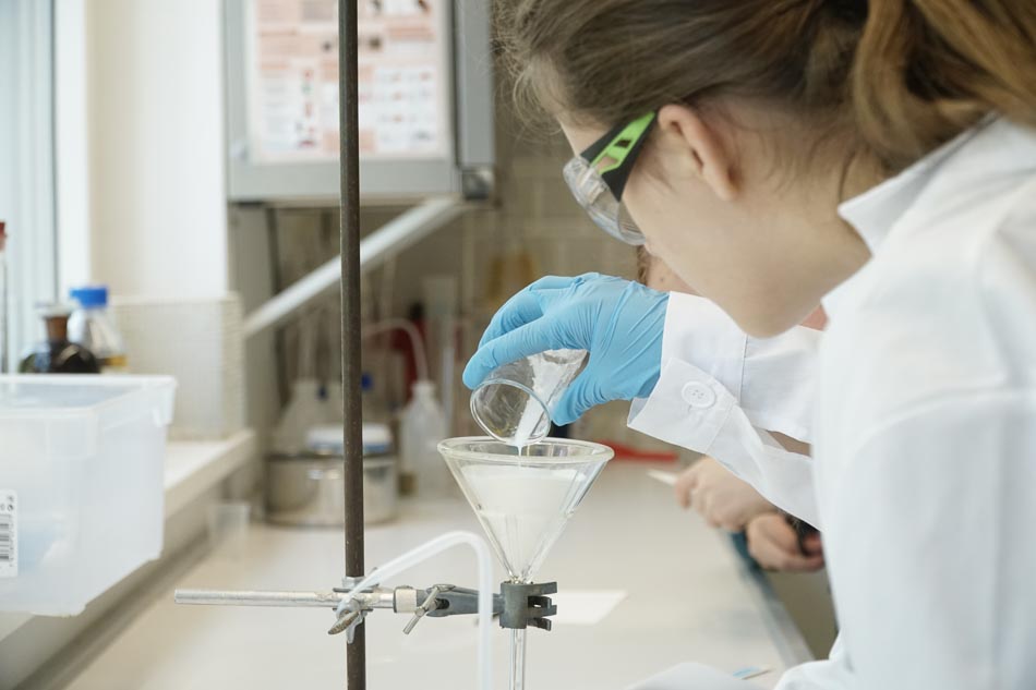 Unter polarisiertem Licht offenbaren die Aspirin-Kristalle eine auffällige Doppelbrechung: Das einfallende Licht wird je nach Kristallorientierung unterschiedlich gebrochen, wodurch interferenzbedingte Farbspiele entstehen. Diese können von intensiven Blau- und Grüntönen bis hin zu warmen Orange- und Rotnuancen reichen. Der Kurs kombinierte Laborarbeit, Analytik und kreative Projektarbeit und bot so einen breiten Einblick in Forschung, Entwicklung und Bewertung von Medikamenten.