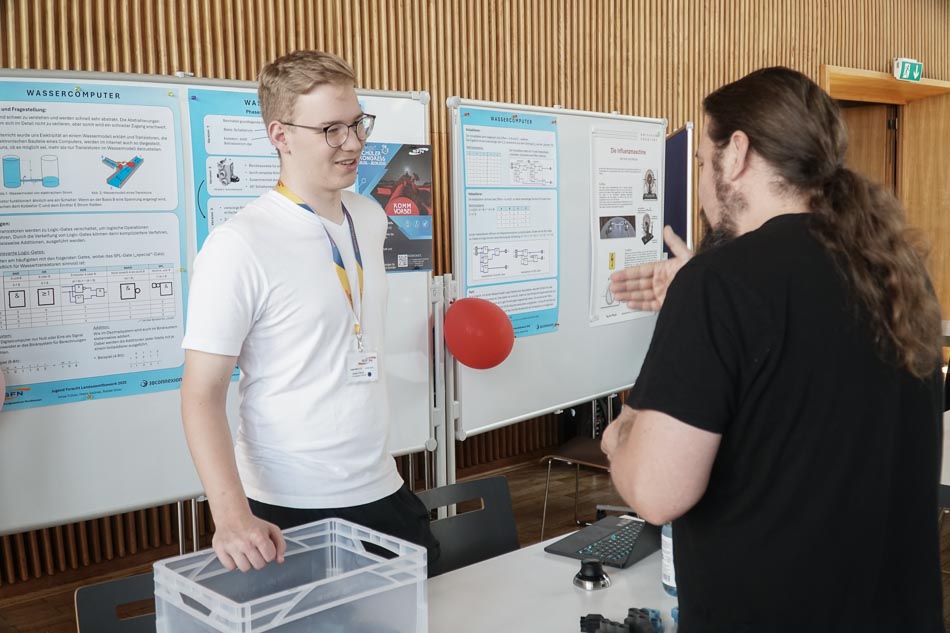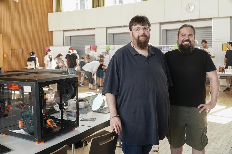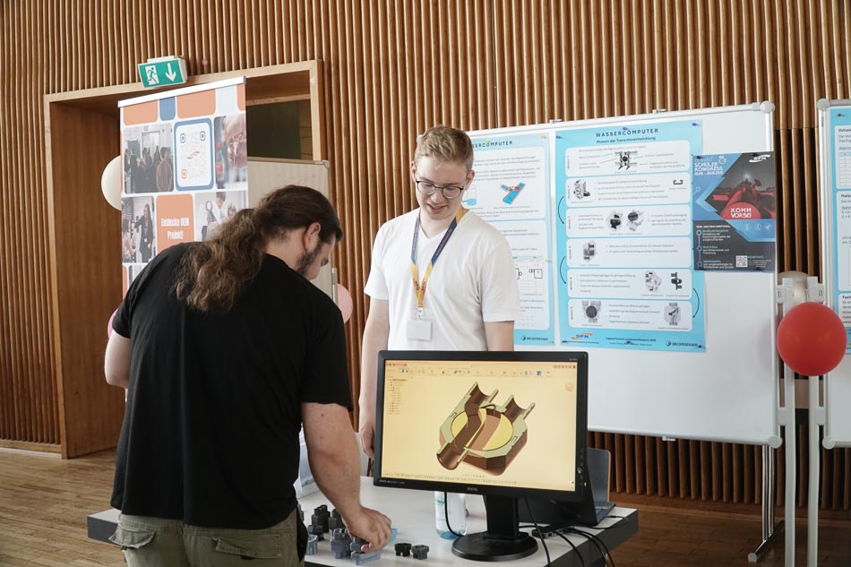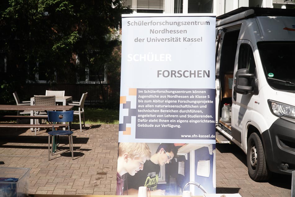 Die Hacker School bot Programmier-Workshops an, und Team Future Space mit Philipp Jäger und Felix Kreyer ermöglichte das Konstruieren von Schlüsselanhängern mit Tinkercad, die anschließend im 3D-Druck gefertigt wurden. Auch das Schülerforschungszentrum Nordhessen mit Philipp Imhof war mit zwei Ständen vor Ort. Draußen vor dem Eingang konnten sich die Kleinsten an Backpulver-Raketen erfreuen und gleichzeitig etwas über Raketenschub lernen, während im Saal der Fokus auf dem von Malte, Rafael und Jonas entwickelten Wassercomputer lag.