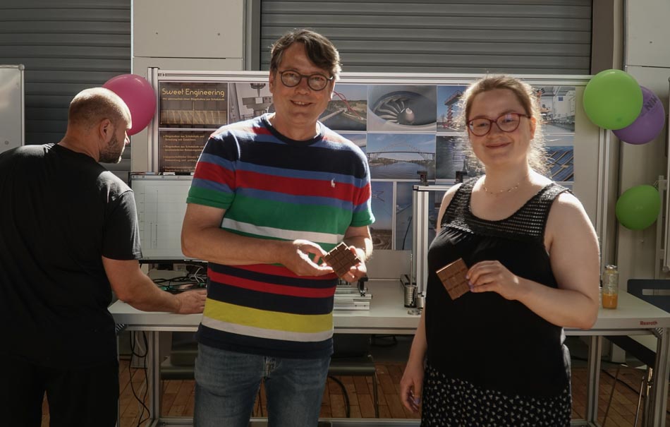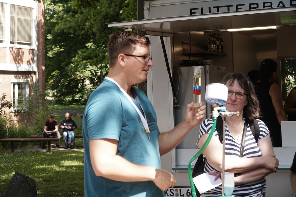 Das Programm bot eine breite Palette an Mitmach-Aktionen aus den Bereichen Mathematik, Informatik, Naturwissenschaften und Technik. Besonders beliebt war der Stand des Fachbereichs Baumechanik/Baudynamik von Prof. Dr.-Ing. habil. Detlef Kuhl, der mit der Aktion „Sweet Engineering“ die Tragfähigkeit von Schokoladenbalken untersuchte.